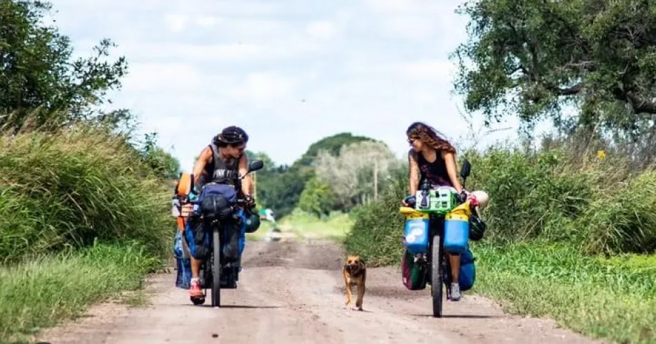 Yvana Sanchéz, Julieta Fernández y Chimarrão, su perro, viajan en bicicleta desde la provincia de Buenos Aires hasta Paraguay, y pasaron por la "Capital de la Tradición", en su camino hacia Chaco para tomar rutas internacionales.