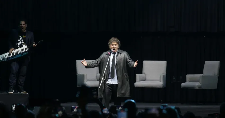 El presidente Javier Milei inició la presentación de su último libro cantando la canción "Panic show" de La Renga, a la que me modificó la letra para señalar: "Toda la casta es de mi apetito".