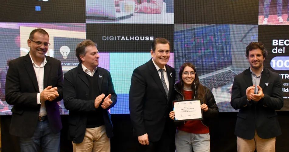 El gobernador Gerardo Zamora encabezó este jueves por la tarde la entrega de certificados del curso de desarrolladores web junior y de inteligencia artificial para negocios, dictado por profesionales de la empresa de tecnología educativa Digital House, destinado a jóvenes que recibieron las becas full stack otorgadas a través del Programa Provincial Metas y la Sociedad del Estado Ciidse (Conocimiento, Investigación, Innovación y Desarrollo).