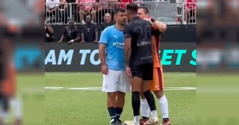El Kun Agüero volvió a jugar al fútbol en el marco del Mundial de Clubes 7 vs 7 que se disputa en Estados Unidos, y protagonizó un momento viral al recibir una tremenda patada y terminar a los empujones con un futbolista rival.