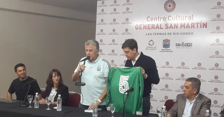 El campeón del mundo del Mundial 78 le obsequió al intendente, la réplica del buzo con la número 5. El municipio le obsequió al visitante alfajores y piezas de la cestería de Río Hondo.