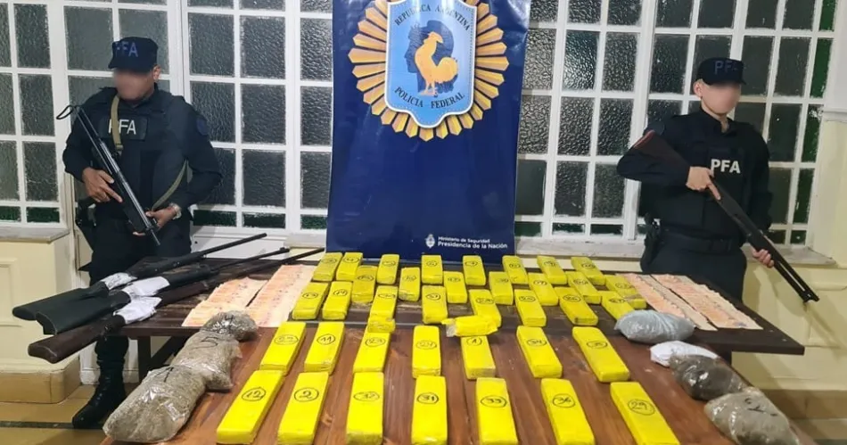 Incautaron ladrillos de marihuana, flores de cannabis sativa, cocaína y armas.