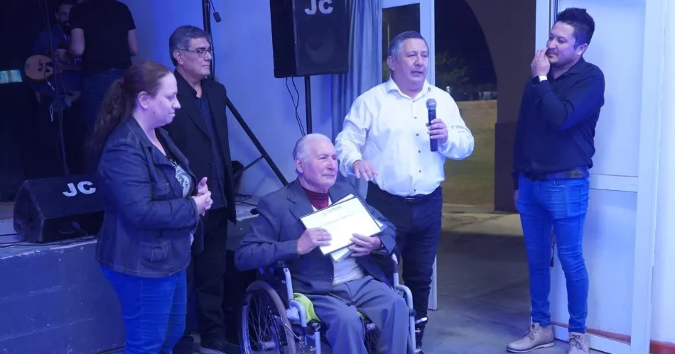 Durante el encuentro, la secretaria de Comunicación, Fernanda Raschi, y el concejal Miguel Montenegro, entregaron un reconocimiento a Armando Santillán, en nombre del intendente Roger Nediani y el Legislativo Municipal.