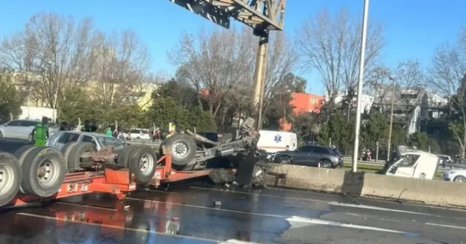 El incidente vial ocurrió a la altura de Bancalari, y se encuentran obstruidos tres carriles al norte y otros dos a Capital. El acoplado quedó sobre una mano y la cabina en la otra, por lo que complica ambos sentidos.