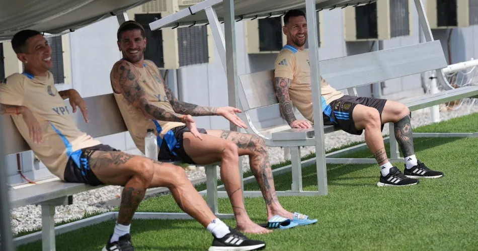 Al grupo se lo vio con buen semblante, en especial a Messi, Rodrigo De Paul y Ángel Di María, quienes se divirtieron un rato mientras estuvieron sentados en el banco de la cancha auxiliar.