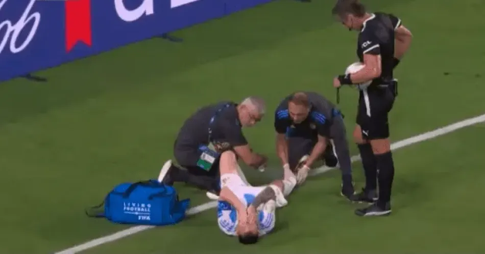 El capitán de la Selección Argentina quiso tirar un centro pero pisó mal, cayó y no logró reincorporarse sin atención médica.