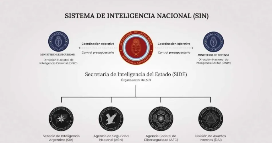 A su vez, la Side, como órgano rector del Sistema de Inteligencia Nacional, tendrá a su cargo la coordinación operativa y el control presupuestario de la Dirección Nacional de Inteligencia Criminal (DNIC) y de la Dirección Nacional de Inteligencia Estratégica Militar (Dniem), dependientes del Ministerio de Seguridad y del Ministerio de Defensa respectivamente.