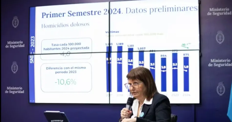 El anuncio lo hizo la funcionaria al encabezar hoy la presentación de las estadísticas criminales correspondientes al período 2023 y primer semestre de de 2024. De acuerdo con esos datos oficiales, el 57,6% ocurrieron en la vía pública, y el 29,1% en domicilios particulares. Sobre este punto, y antes de que se supiera la denuncia que hizo la ex pareja de Fabiola Yañez contra el ex presidente Alberto Fernández por haber sufrido violencia física, Bullrich adelantó que en los próximos días se enviará al Congreso un proyecto de ley contra la violencia intrafamiliar.