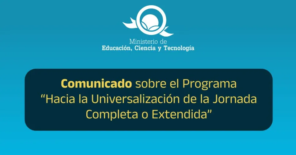 A través de un comunicado, se informó que este viernes el Ministerio de Educación, Ciencia y Tecnología de la Provincia, ha recibido, por parte de la Secretaría de Educación de Nación, los fondos para el pago del componente salarial por extensión horaria en el marco del Programa "HACIA LA UNIVERSALIZACIÓN DE LA JORNADA COMPLETA O EXTENDIDA".