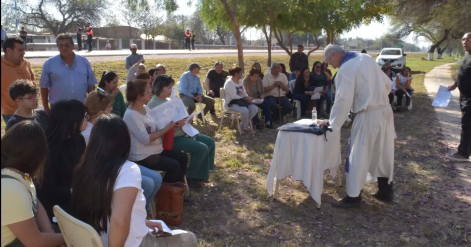 Luego el numeroso grupo de personas se trasladó hasta la Plazoleta del Maestro donde se colocó una ofrenda floral, por la tarde está prevista la realización una misa en el Santuario Nuestra Señora de Loreto, oficiada por el Padre Alejandro.