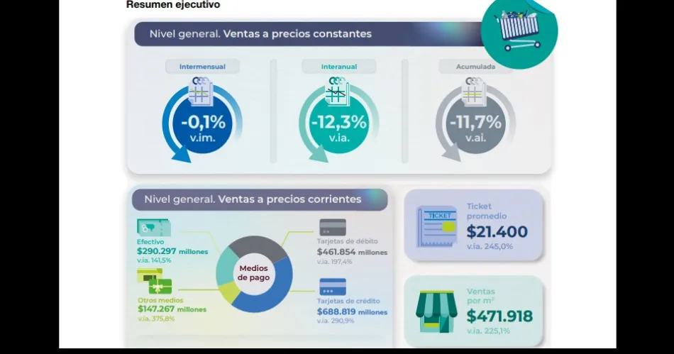 Las ventas cayeron 12,3% en supermercados y acentúanla retracción del consumo