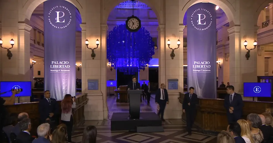En su discurso, Milei hizo referencia a la elección del nombre Palacio Libertad Domingo Faustino Sarmiento: "Es el principio de un cambio de época, no solo de nombre".