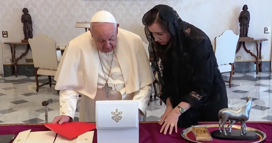 "Audiencia con el Santo Padre, hoy en la ciudad del Vaticano. ¡Gracias Santo Padre por sus palabras, consejos y por tener siempre presente a nuestra amada Argentina!", señaló la funcionaria en un mensaje que difundió en su cuenta de la red social X donde además le respondió a un usuario que le consultó por su vestimenta.
