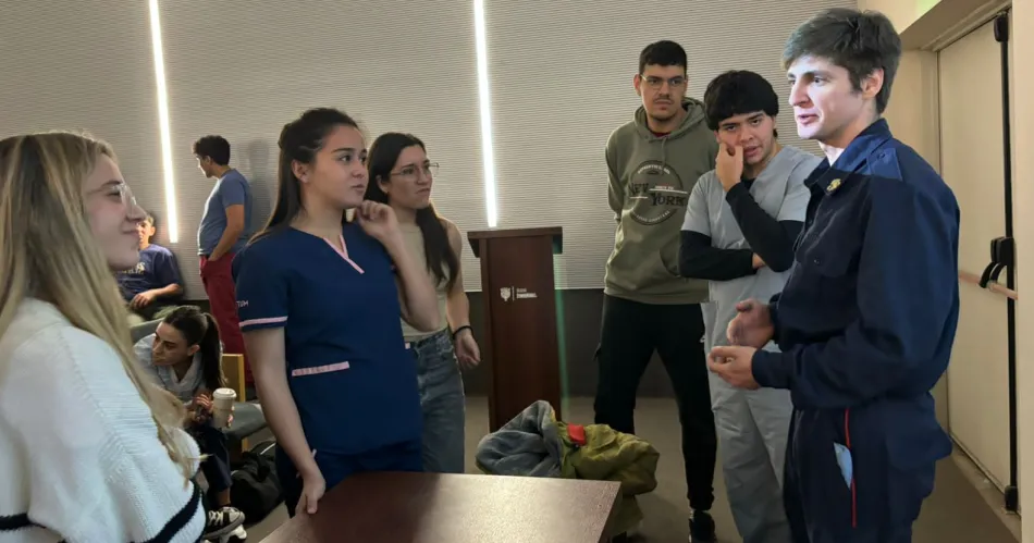 Uno de los momentos más destacados fue la presentación del equipo de protección personal utilizado por los bomberos en situaciones de riesgo, que los estudiantes pudieron conocer de cerca. Además, la capacitación incluyó una sesión de preguntas y respuestas, donde los futuros médicos interactuaron con Guerrero para profundizar sobre las medidas de seguridad en incendios y las técnicas de primeros auxilios en casos de intoxicación.