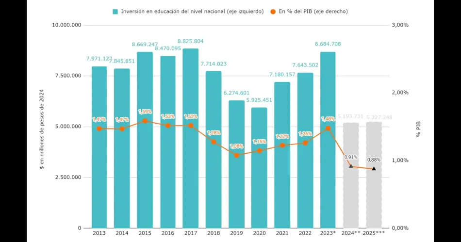 En 2025 el Estado nacional invertirá el 0,88% del PBI en educación