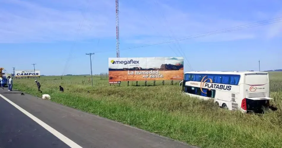 El hecho ocurrió este domingo a la madrugada en la Ruta Nacional 2. Según informó el sitio La Nación, el vehículo se despistó y terminó en la banquina de pasto sobre el agua de una zanja. El copiloto, de 50 años, y los doce pasajeros que viajaban a bordo resultaron ilesos, según confirmaron fuentes de seguridad de la provincia de Buenos Aires.
