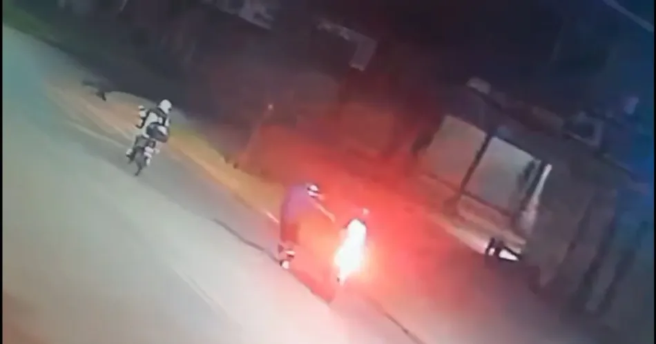 La violenta secuencia quedó registrada en un video grabado una cámara de seguridad de la zona, donde se ve aparecer en escena a los dos delincuentes arriba de una moto.