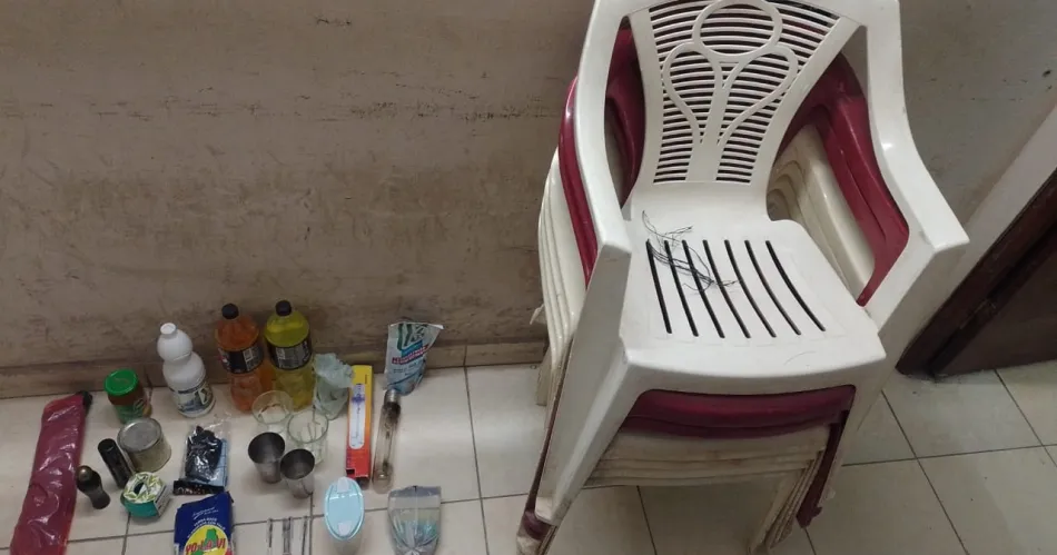 Al ser detenido, se le incautó un cuchillo carnicero de 27,5 cm y una bolsa con diversos elementos sustraídos, incluidos focos led, lapiceras y vasos de acero, que llevaban la inscripción "María de Guadalupe". El procedimiento se realizó en presencia de un testigo.