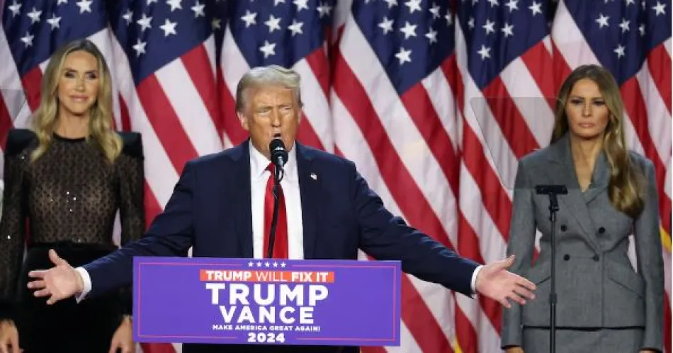 Alrededor de las 4.30, el republicano se mostró junto a su familia y los principales referentes del partido para proclamarse como ganador de la elección frente a la vicepresidenta y candidata del Partido Demócrata, Kamala Harris.