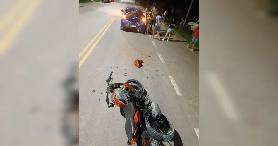 Un joven motociclista sufrió lesiones de consideración, luego de haber impactado la parte trasera de un automóvil y terminar tendido sobre el asfalto. Sufrió un corte en el rostro y una posible fractura.