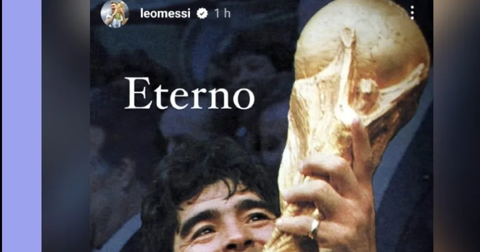 Messi no dudó en participar con un sentido tributo para su ídolo y quien supo ser su entrenador en la Selección Argentina. El astro rosarino utilizó su cuenta de Instagram para publicar una foto del hijo pródigo de Villa Fiorito alzando la Copa del Mundo tras derrotar a Alemania en la final del Mundial de México 1986, fotografía que que completó con la palabra "Eterno", una descripción propia para una leyenda como Antorcha.