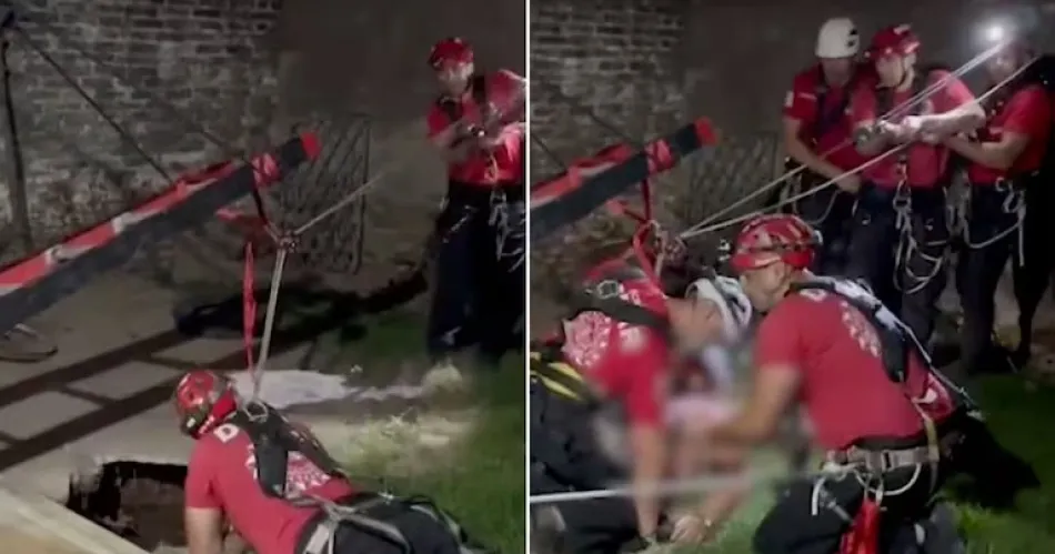 Video: una mujer cayó a un pozo y los bomberos pudieron sacarla en un dramático rescate
