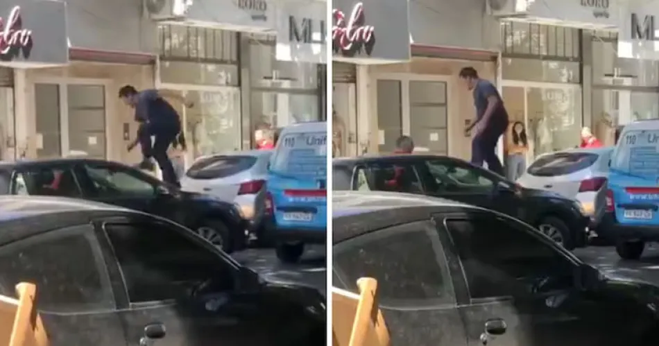 VIDEO: Discutieron, se subió al auto y le rompió el parabrisas a patadas