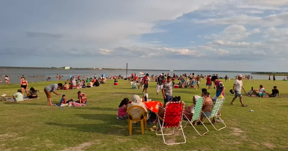 LAS TERMAS, Río Hondo (C). En el primer fin de semana de 2025, termenses y turistas se volcaron para mitigar las altas temperaturas a la Ecoplaya, que funciona en el Embalse Río Hondo entre la tradicional playa popular y Prefectura Naval.