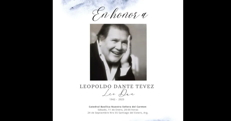 La familia de Leo Dan informó, a través de la página oficial de Facebook, que este sábado 11 en enero, en Santiago del Estero y en Miami, se celebrarán misas en honor a la vida de Leopoldo Dante Tevez, músico santiagueño que falleció el pasado 1° de enero en Miami.