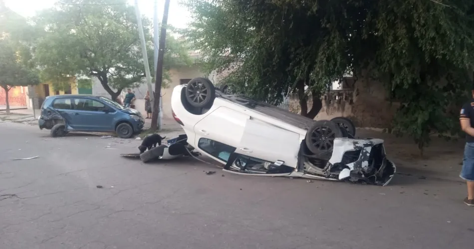 A raíz del golpe, el rodado del irresponsable conductor quedó con las ruedas arriba y la parte delantera reducida a chatarra. Bº 8 DE ABRIL