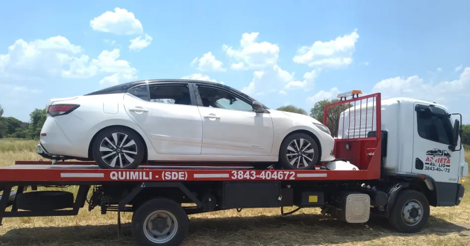 Finalmente, una grúa trasladó la unidad accidentada hacia la ciudad de Quimilí. Allí, un mecánico bregará por una reparación inmediata, a fin de que los turistas continúen su viaje.