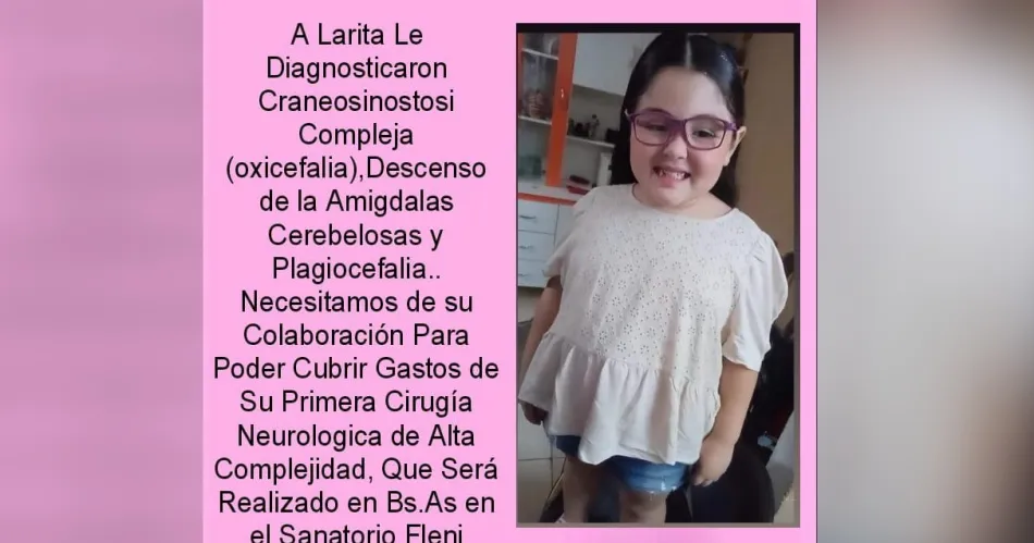 Lara necesita $20 millones para una compleja cirugía neurológica y su familia pide colaboración