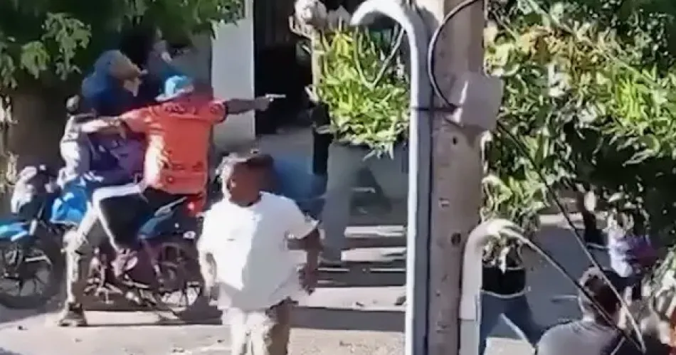 En las imágenes que se volvieron virales se pueden ver un gran grupo de personas atacándose sin piedad lanzándose piedras y hasta un hombre sobre una moto y un arma en la mano disparando.