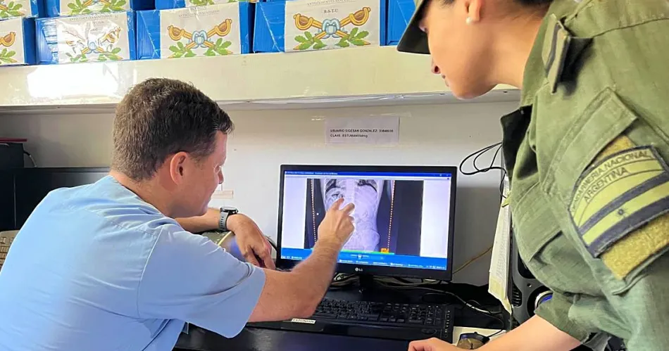 Ante la sospecha de un posible delito, los gendarmes trasladaron a los involucrados hasta un hospital local con el apoyo del Servicio de Emergencias 107. Mediante estudios radiográficos, se constató la presencia de cuerpos extraños en la zona abdominal de los pasajeros.