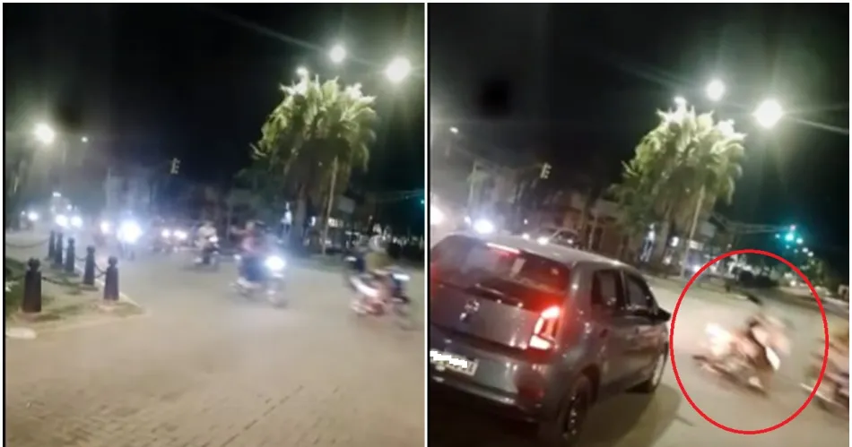 Las picadas de motos se volvieron un dolor de cabeza para muchos santiagueños que se quejan por el peligro que representan. En esta oportunidad, el lamentable episodio ocurrió este jueves a la noche en la ciudad de La Banda, en donde un motociclista cruzó en rojo y terminó derrapando al rozar a un automóvil.