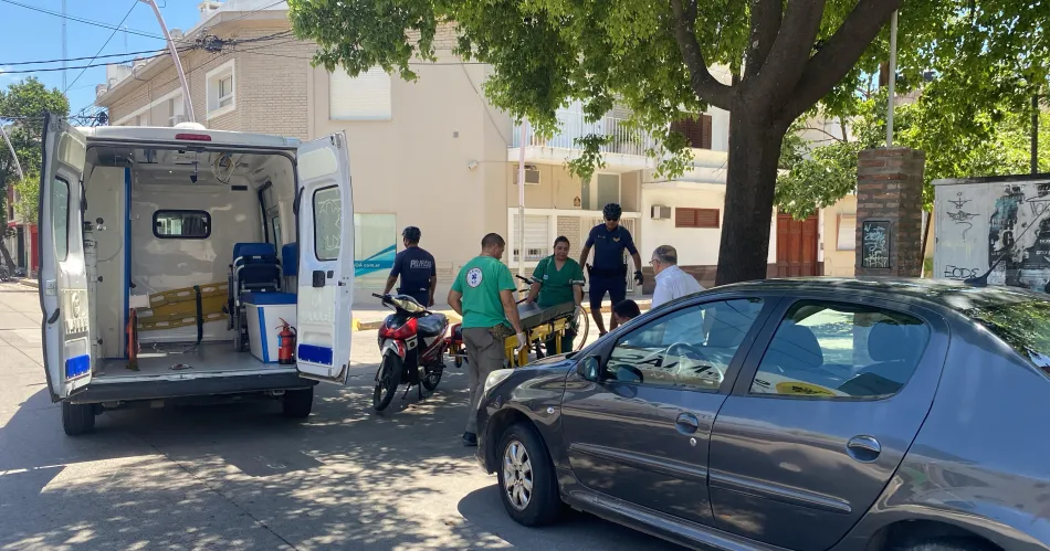 Un motociclista de 36 años sufrió lesiones luego de impactar contra un automóvil en la intersección de Pellegrini y Perú, en la siesta de este viernes.