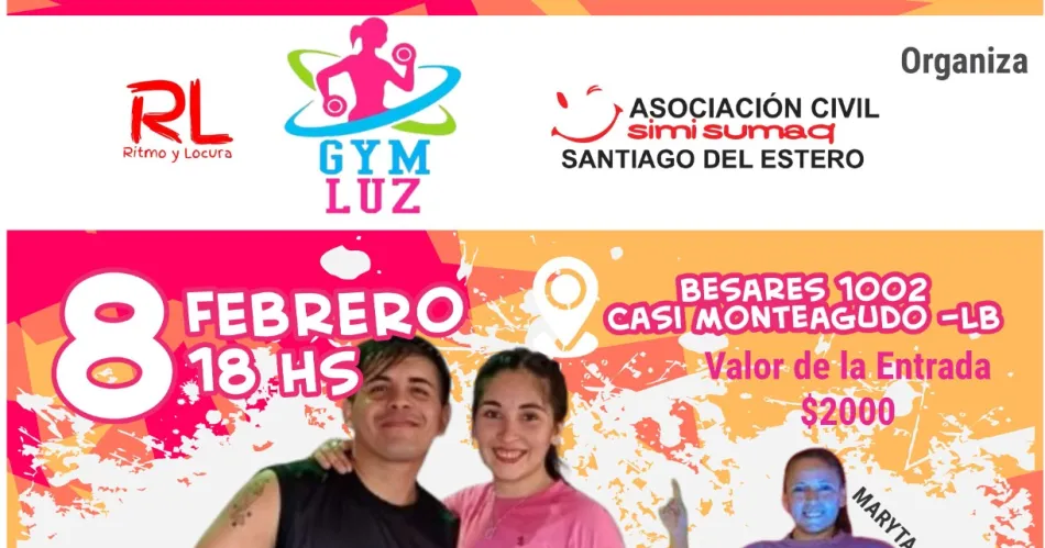 La Asociación Civil Simi Sumaq invita a la comunidad a participar de su primer evento solidario del año, una Master Class de Zumba, que se llevará a cabo el sábado 8 de febrero a las 18 horas en el Gimnasio de Luz, ubicado en Besares 1002, casi Monteagudo.