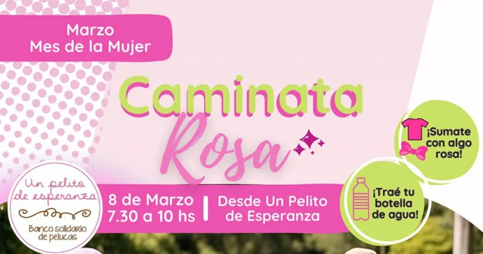 Mañana se realizará la Caminata Rosa por el Día de la Mujer, organizada por el banco de pelucas "Un pelito de Esperanza". La misma comenzará a las 7.30 y partida desde la sede del taller, que se encuentra ubicado en Av. Pedro León Gallo 1297 (esquina Antártida Argentina) de la ciudad Capital.