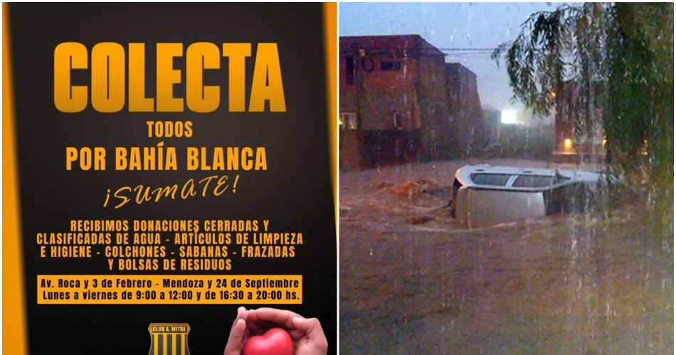 A través de sus redes sociales, el Club Atlético Mitre convocó a una colecta solidaria "Todos por Bahía Blanca" donde invita a colaborar con las víctimas del devastador temporal del pasado viernes.