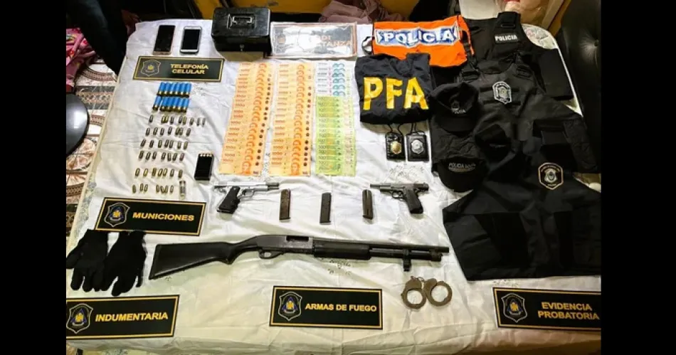 Los procedimientos culminaron con la detención de todas las personas investigadas, como así también con el secuestro de los rodados involucrados, armas de fuego de grueso calibre y municiones, indumentaria policial, dinero en efectivo, y celulares.