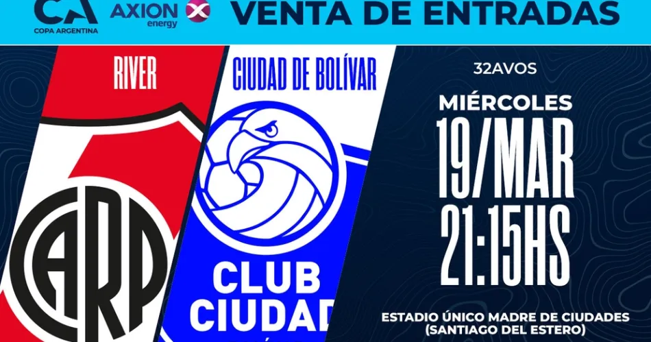 El partido por los 32avos de final entre River Plate y Ciudad Bolivar se jugará el miércoles a las 21:15 en el estadio Único Madre de Ciudades, en Santiago del Estero. A continuación, el detalle de la venta de entradas para ambas hinchadas.