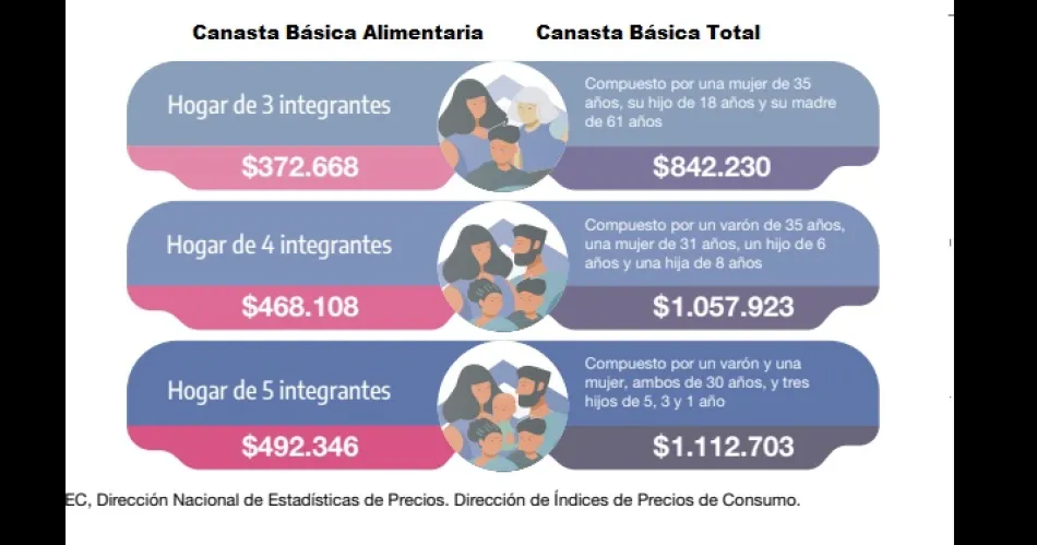 De esta manera, la CBT alcanzó un monto de $1.057.923 para una familia tipo. Los hogares con ingresos por debajo de ese valor son técnicamente considerados pobres. La CBA, por su parte, llegó a los $468.108, por lo que las familias con ingresos por debajo de ese monto son consideradas "indigentes".