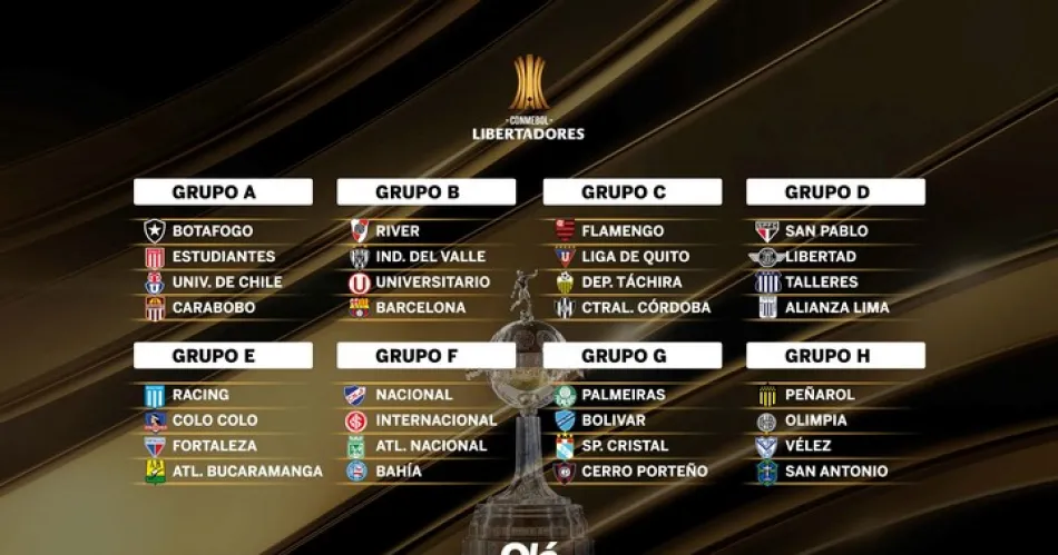 En el Grupo H, con Peñarol como cabeza de serie, se dará un duelo especial entre dos símbolos de Boca: el Olimpia que conduce Martín Palermo se medirá con Vélez, que espera que Guillermo Barros Schelotto se siente en el banco. También participará por primera vez San Antonio (Bolivia).