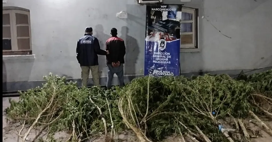 En el marco de la persecución de los masculinos por una zona montuosa aledaña, los efectivos descubrieron una plantación de 39 ejemplares de Cannabis sativa. Ante esto, se dio intervención a la Dirección General de Drogas Peligrosas, cuyo personal realizó pruebas de campo, confirmando la presencia de marihuana.