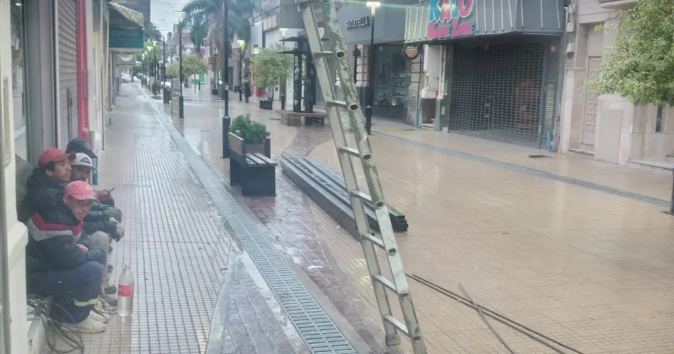 En esta galería de fotos, se pueden observar al casco céntrico santiagueño desolado debido al feriado, con calles mojadas y acumulación de agua producto de las intensas lluvias.