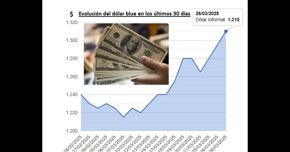 El blue subió a $1.310, acumula 5,8% en marzo y tocó su récord en 7 meses