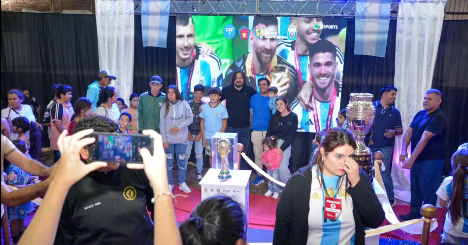 MONTE QUEMADO, Copo. Con enorme emoción y una gran convocatoria, se desarrolló ayer el acto central por la llegada de las copas del Mundo, la Finalissima y la Copa América, todas ganadas por la "Scaloneta", a Monte Quemado. Desde las 8, familias, equipos infantiles y vecinos comenzaron a acercarse al Polideportivo Municipal para vivir esta jornada que se extendio hasta las 20.