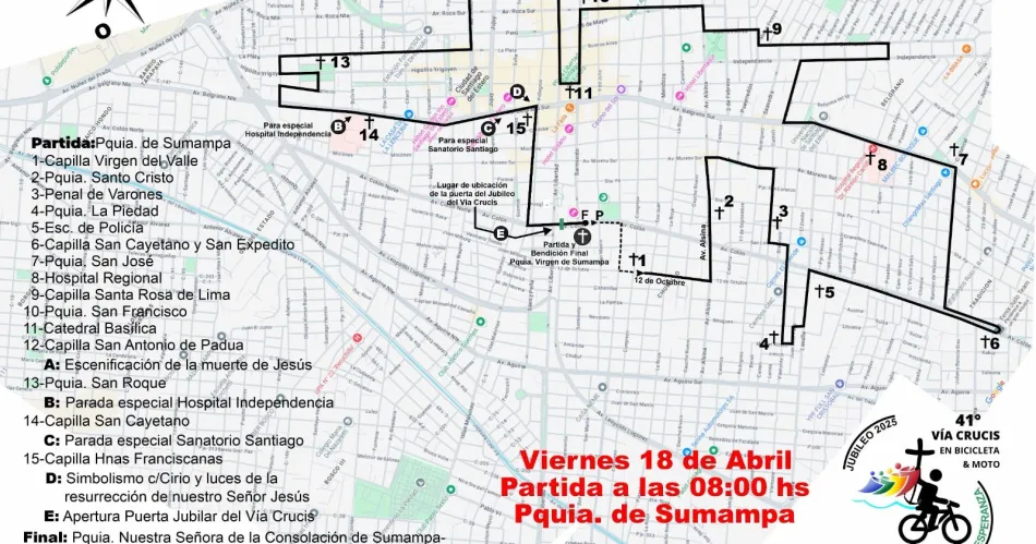 La edición 2025 del tradicional Vía Crucis en bicicleta y motos estará centrada en el Año Jubilar, por lo que ha modificado su recorrido para realizar paradas en centros de salud de la ciudad y el penal de varones, y se abrirá la Puerta Jubilar para que reciban la bendición y perdón.