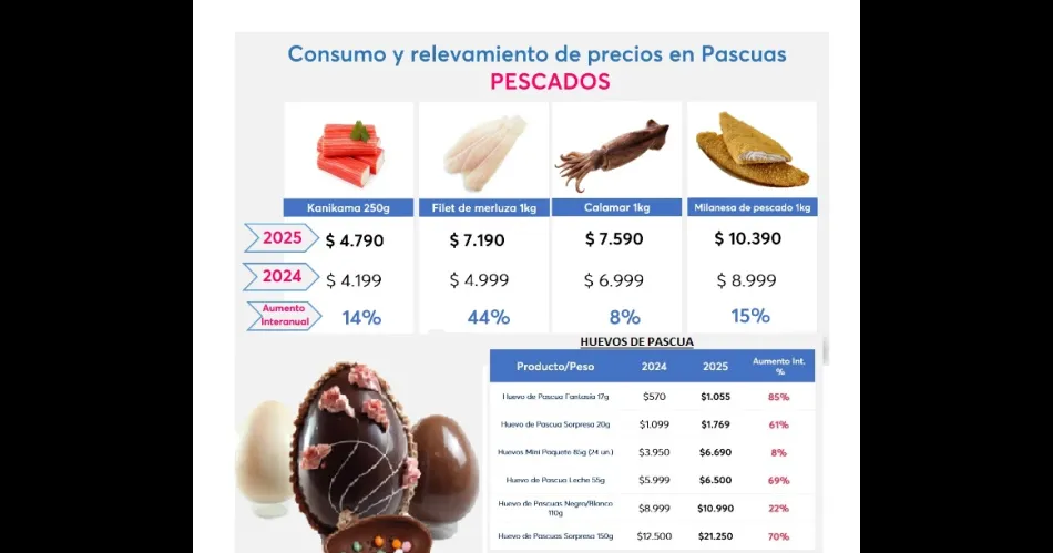Los productos tradicionales de Pascuas registraron subas de hasta 85% respecto del año anterior, de acuerdo con un relevamiento privado.