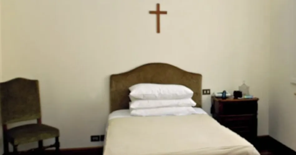 En lugar del Palacio Apostólico con sus salones dorados, Francisco optó por un cuarto sencillo, sin más que una cama individual, un crucifijo y una lámpara de lectura.